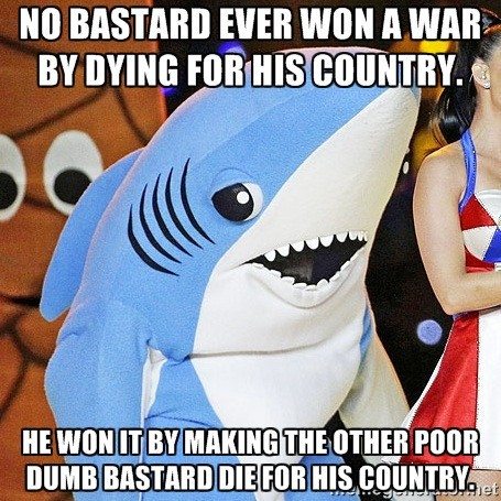 Gen. Left Shark Patton Jr. knows how you win wars.