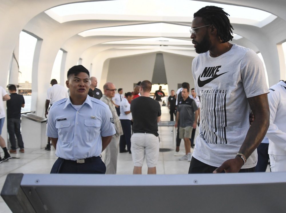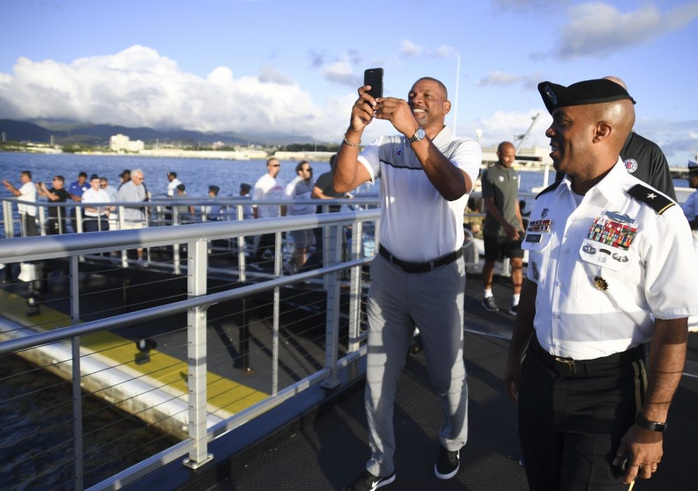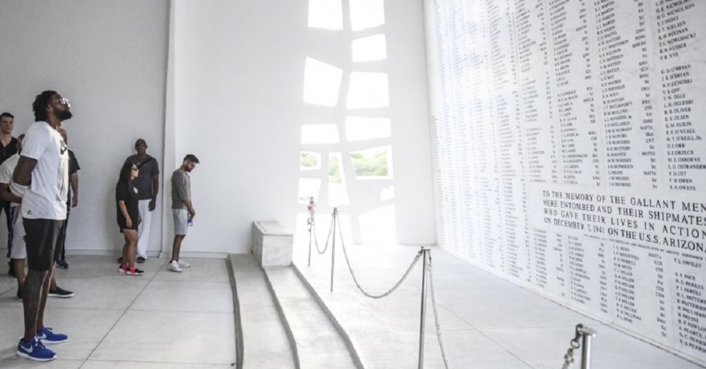 Taking a break from their pre-season training camp in O’ahu, Hawaii, the LA Clippers basketball team, coaches, and staff paid their respects during a tour of the USS Arizona Memorial on Sept. 27, 2017.