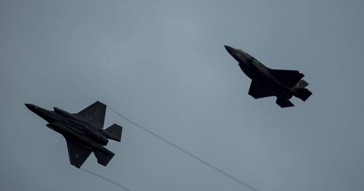 Two F-35B Lightning II aircraft with Marine Fighter Attack Squadron 121, prepare to land at Marine Corps Air Station Iwakuni, Japan, Jan. 18, 2017. VMFA-121 conducted a permanent change of station to MCAS Iwakuni, from MCAS Yuma, Ariz., and now belongs to Marine Aircraft Group 12, 1st Marine Aircraft Wing, III Marine Expeditionary Force. The F-35B Lightning II is a fifth-generation fighter, which is the world’s first operational supersonic short takeoff and vertical landing aircraft. The F-35B brings strategic agility, operational flexibility and tactical supremacy to III MEF with a mission radius greater than that of the F/A-18 Hornet and AV-8B Harrier II in support of the U.S. – Japan alliance. (USMC photo)