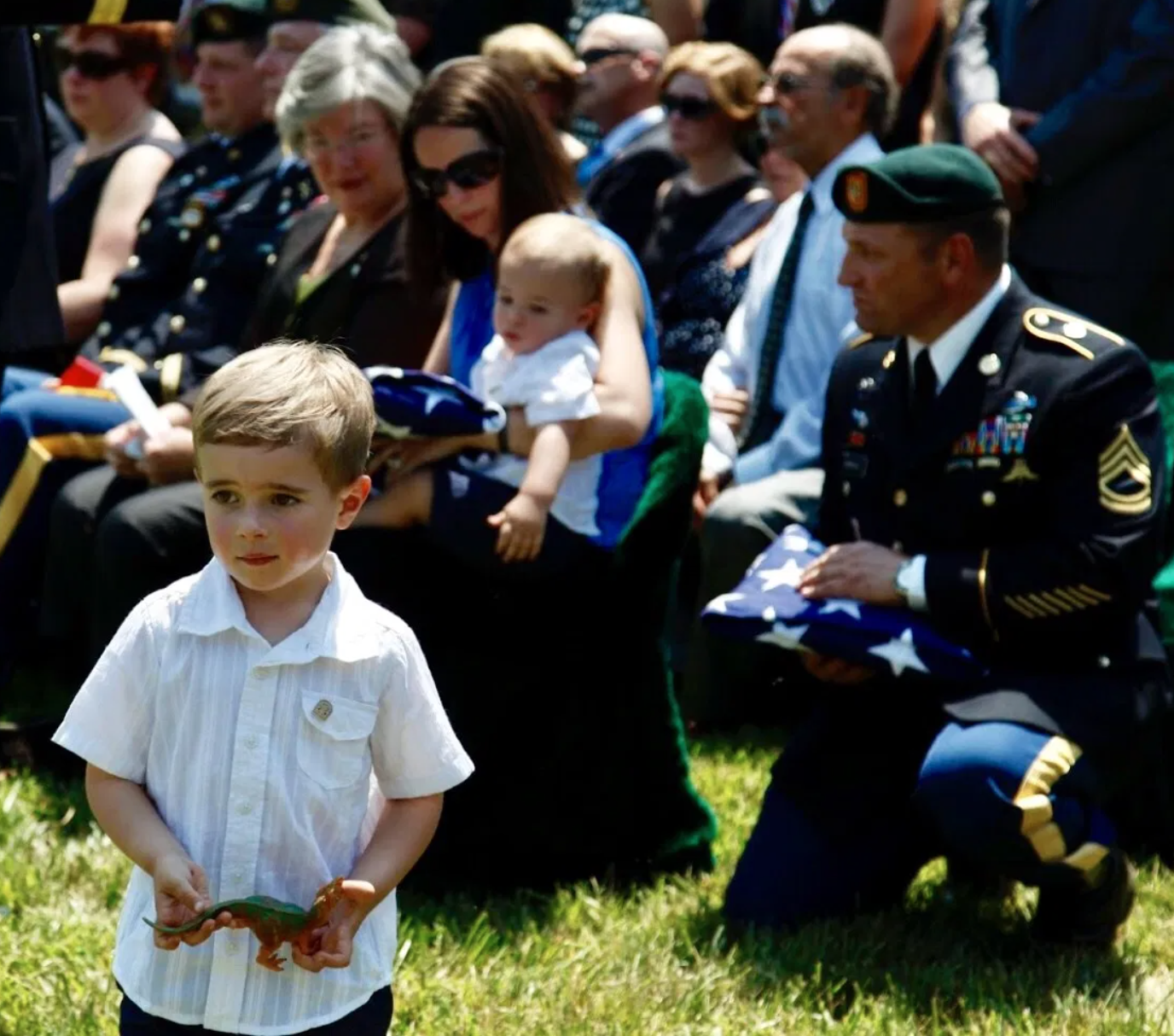 Finally, I remember the boys and I receiving the folded flags. How do you process receiving a folded flag in the place of your Daddy when you’re only three years old? Michael was given the flag, but really only wanted his Daddy T-Rex. As I held our 16 month old, I watched as Gerry, our Casualty Assistance Officer, took a knee, and took Michael’s flag for him. I love this picture – this moment in time – as it truly captures how Gerry so beautifully served our family.