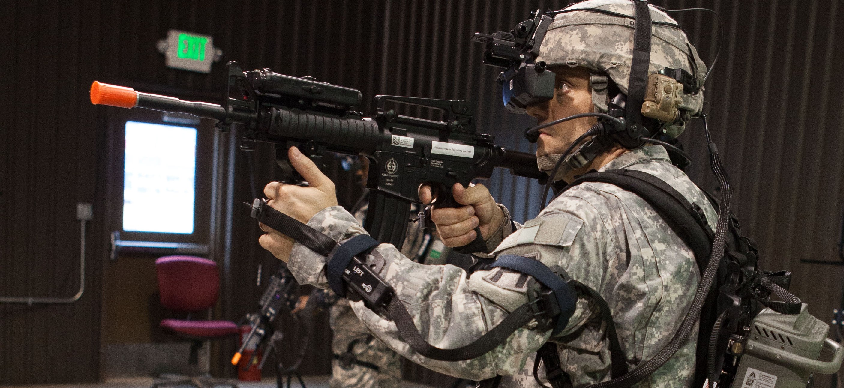 Similarly, the Army’s Dismounted Soldier Training System allows troops to train as a squad in virtual reality. The system allows for customizable missions and incorporates all of a trainee’s movements except for actually walking. Because of the high cost of treadmills, each soldier stands on a rubber pad and moves through the environment with a controller mounted on their weapon, meaning they can’t train the muscle memory of leaping to cover or learn as well to operate with muscle fatigue.