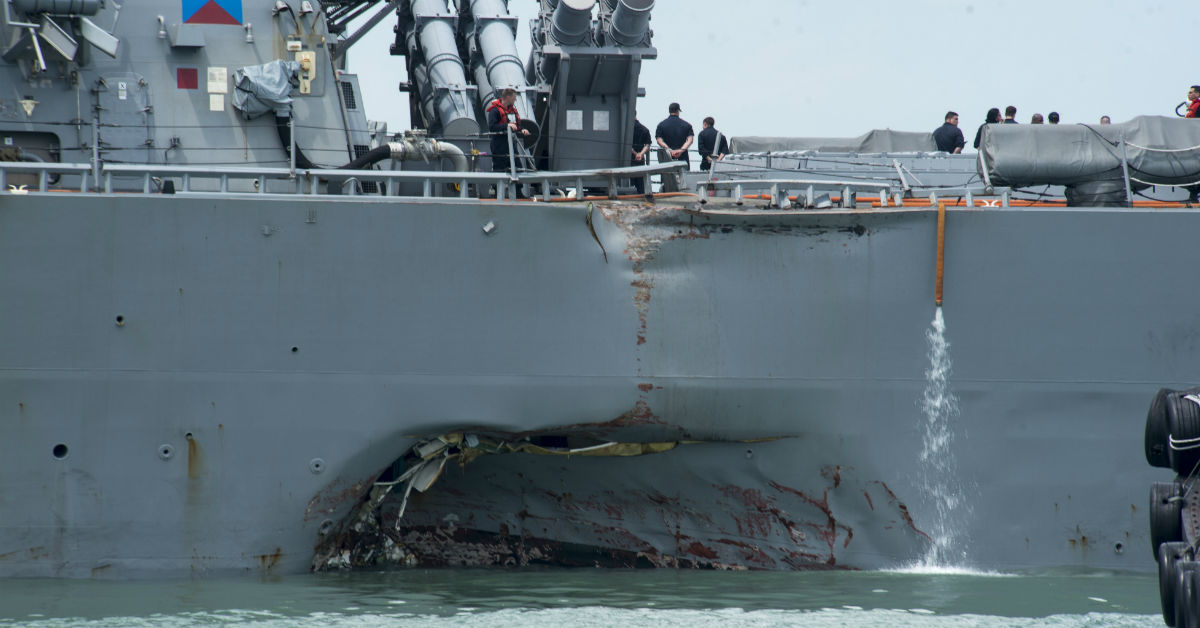 The destroyer USS John S. McCain collided with an oil tanker last month off the coast of Singapore, leaving 10 US sailors dead and five injured. And the USS Fitzgerald, another destroyer, collided with a container ship in waters off Japan in June, killing seven sailors.