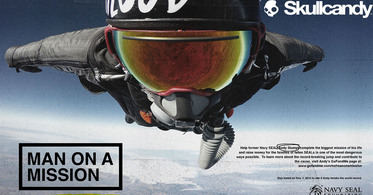 Andy Stumpf is a former Navy SEAL who hasn’t lost one iota of his drive since he took off the uniform. The same motivation that took him to harm’s way and back is now pushing him to break the wing suit overland distance record of 17.83 miles. At the same time he’s putting it all on the line to accomplish an even more important feat: raising $1 million for the Navy SEAL Foundation, a non-profit that supports the families of fallen SEALs.