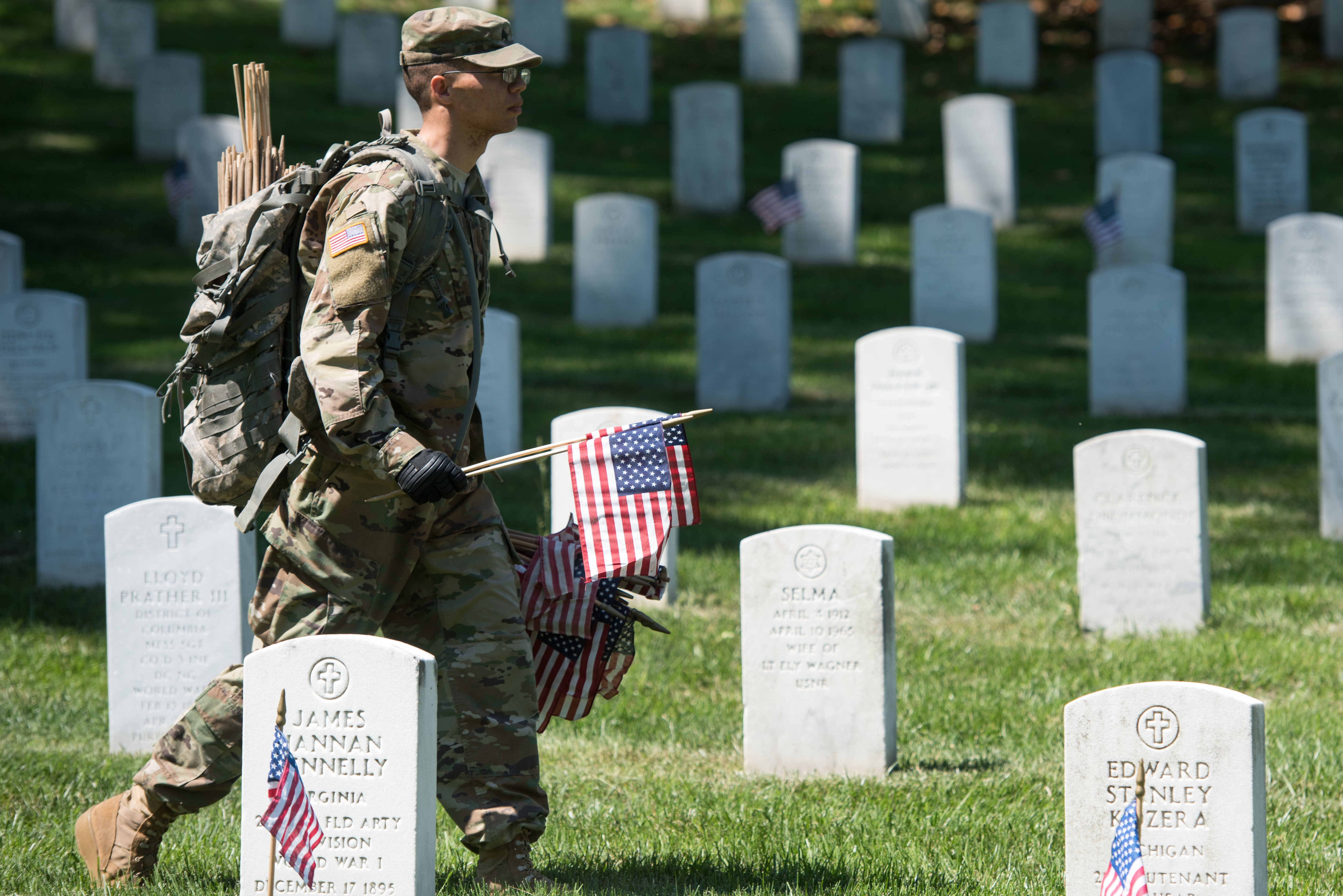 “It’s a great commitment by these Soldiers to do this, to place them at the hundreds of thousands of graves here,” said Secretary of the Army Mark T. Esper. “What it does is it pays respect and homage to those who served before them, going all the way back to the Civil War and signals the importance of their service and that they will never be forgotten for what they did. So that they know, these young Soldiers today, much as I knew when I was in uniform, that should I have to pay that ultimate price, I would not be forgotten either in America’s hearts and minds.”