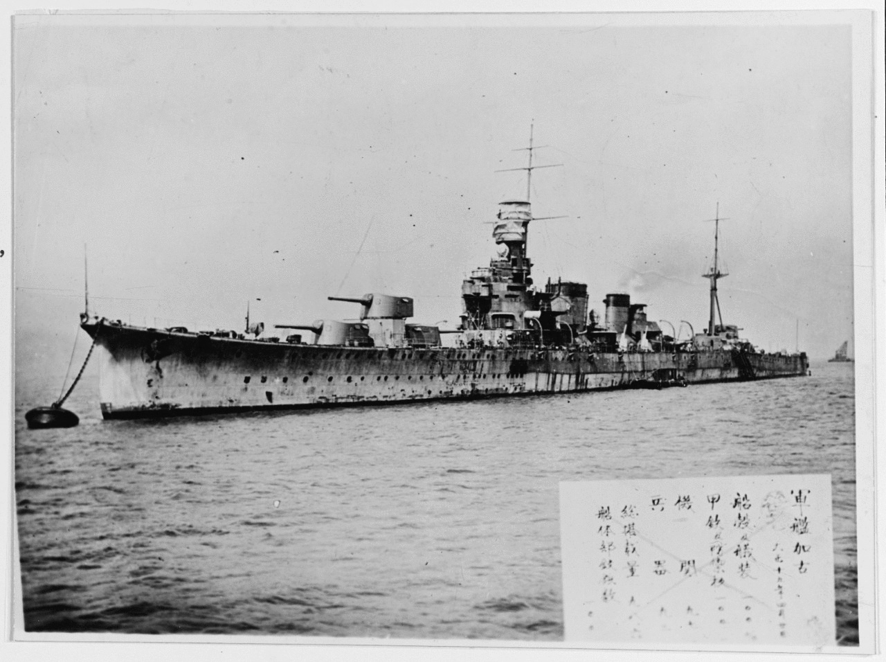 The Japanese heavy cruiser Kako in 1926. It was the only Japanese ship lost as a result of the raid on Savo Island, sank on August 10 as the Japanese fleet left the engagement area.