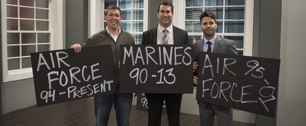 The majority of the PSA’s production team were made up of veterans, including actor and Air Force veteran Brice Williams, who co-stars with Riggle, and director Jim Fabio, who currently serves as an Air Force Combat Camera Officer (all three are pictured above). Fabio was selected out of more than 50 directors — all military veterans — and was mentored by Hollywood producer-writer Judd Apatow during the process.