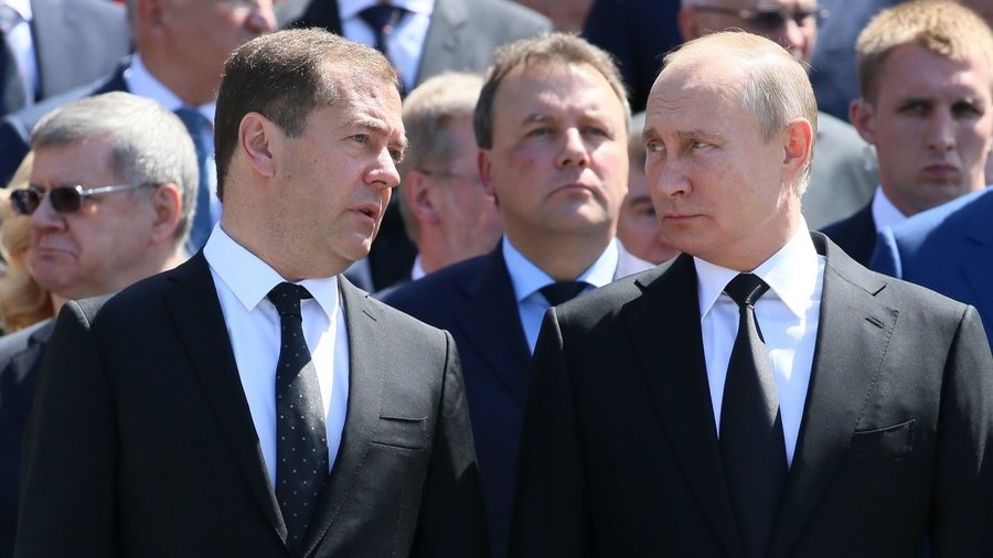 Russian Prime Minister Dmitri Medvedev and President Vladimir Putin.