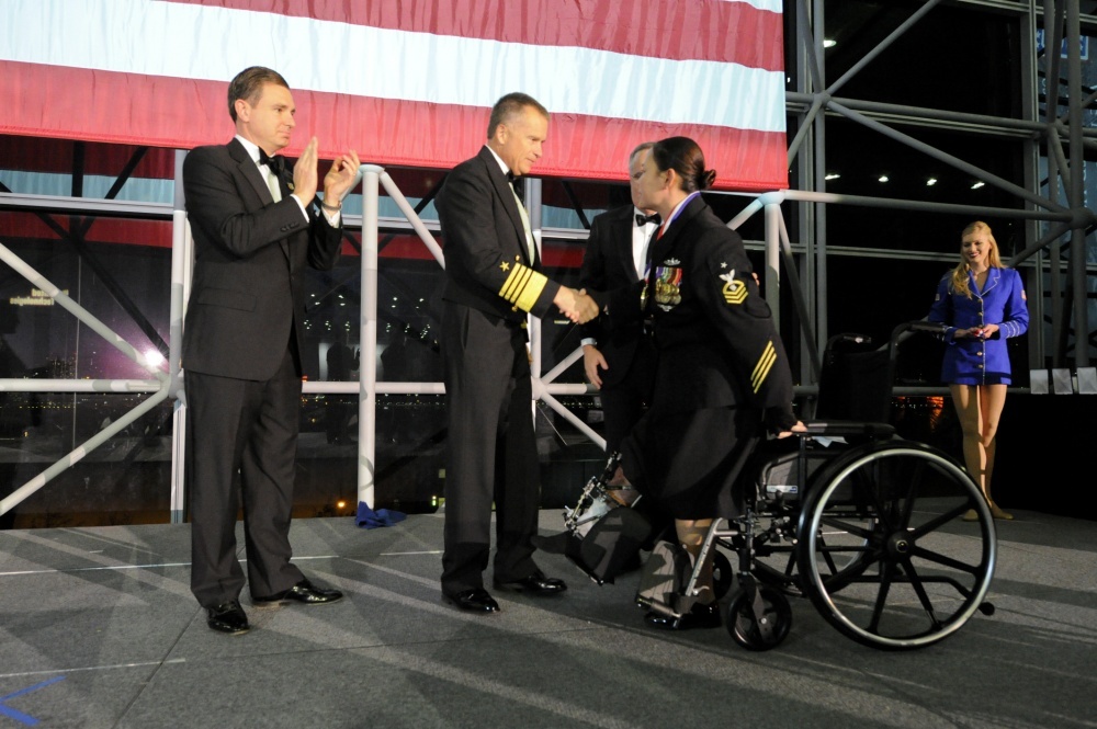 Hockenberry receiving the George Van Cleave Military Leadership Award at 53rd USO Armed Forces Gala.