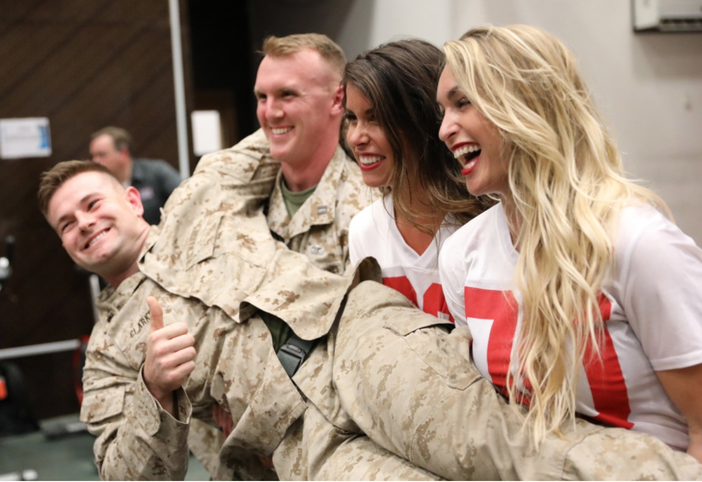 SC: It was amazing that we got to do it. Going over there to Iraq, in harm’s way in 110 degree heat and seeing all the soldiers there really was amazing. We took our coach (Dan Quinn), several players and a couple of cheerleaders. It really gave us perspective to see how our troops were over there.
