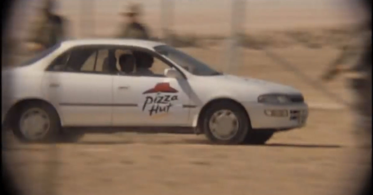 This sometimes comes up in movies and TV, like in Generation Kill, when 20 cars showed up at the wire filled with Pizza Hut while the Marines were waiting for the invasion of Iraq to begin. Driver and comedian Ray Person immediately calls it,