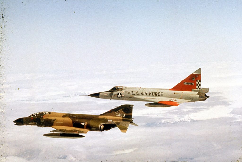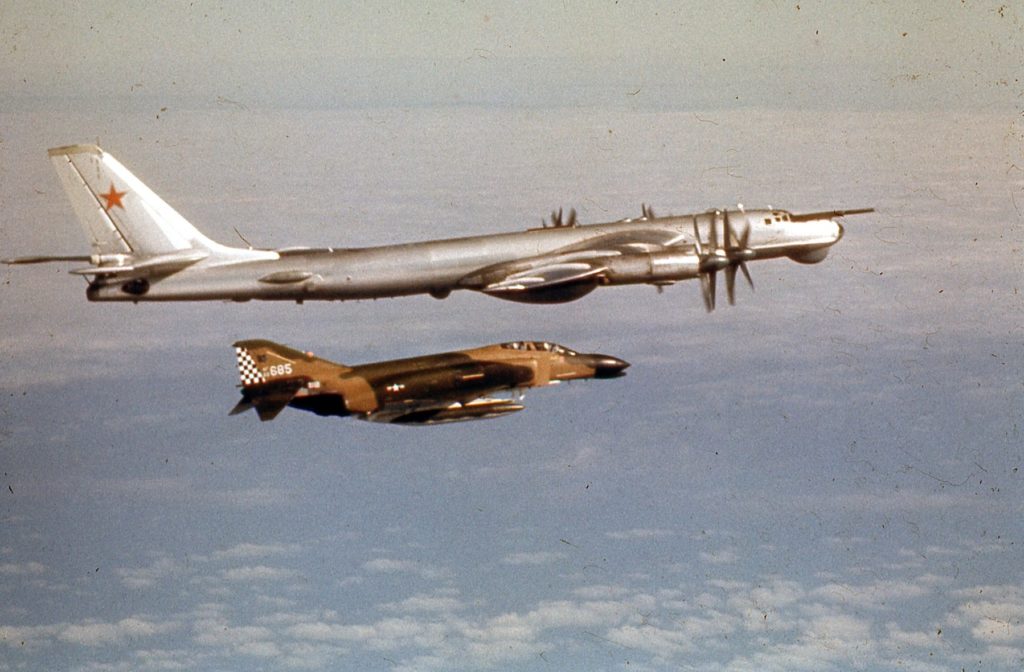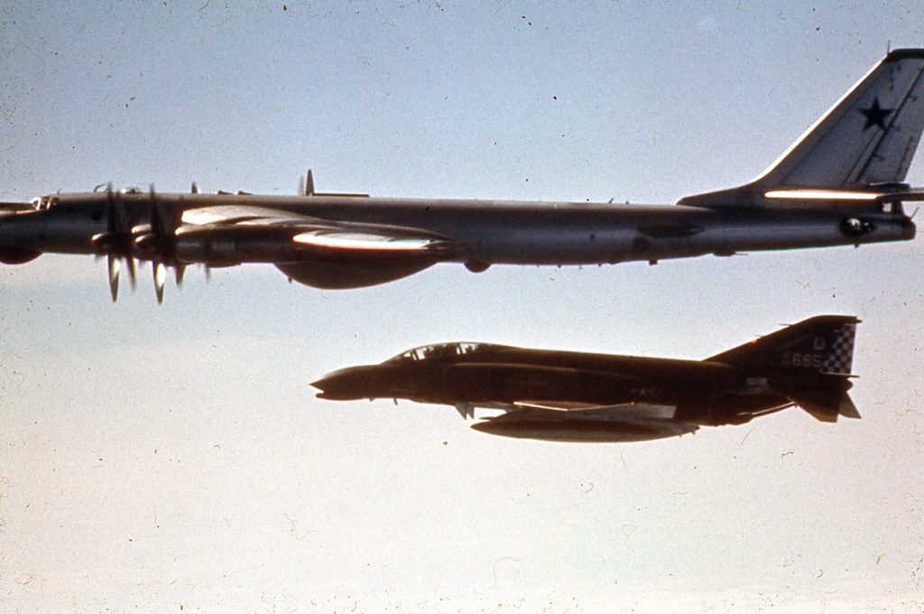 An F-4C from 57th FIS escorts a Tu-95 intercepted near Iceland in the early 1970s: