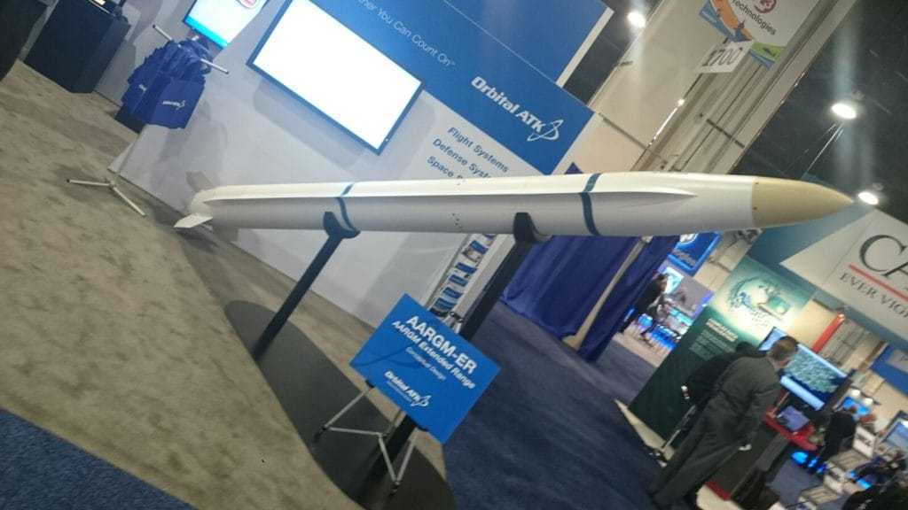 For instance, one such weapon being displayed was the Advanced Anti-Radiation Guided Missile – Extended Range. The AARGM-ER is a development of the AGM-88E AARGM, in essence: a vastly upgraded HARM. AARGM is already in service with the Navy, with more being produced, and it is used on the F/A-18C/D/E/F Hornet and Super Hornet airframes on their pylons, easily the most capable anti-radar missile they have ever carried.