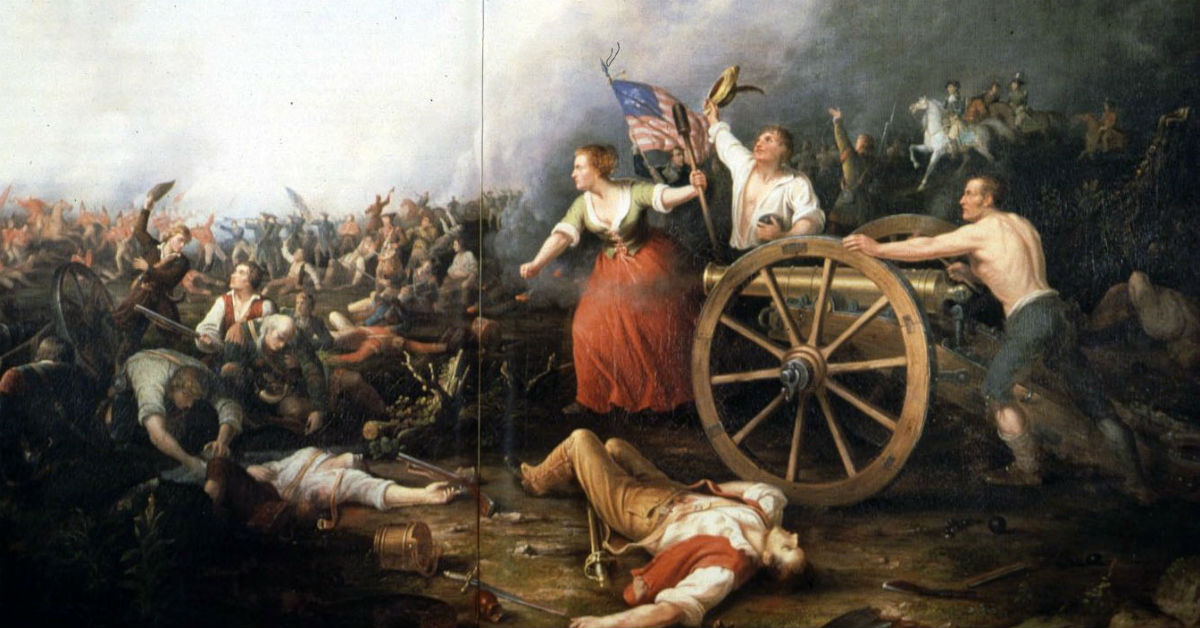 It appears that “Molly Pitcher” is a composite figure built on the stories of Mary Ludwig Hays McCauley and Margaret Corbin. Mary Hays (as she was known at the time) was present at Monmouth and a witness claimed that a British cannonball bounced right between her legs while she was serving the American gun, ripping away part of her petticoat. She supposedly quipped that it was lucky the ball wasn’t aimed a little higher and went on with her work.