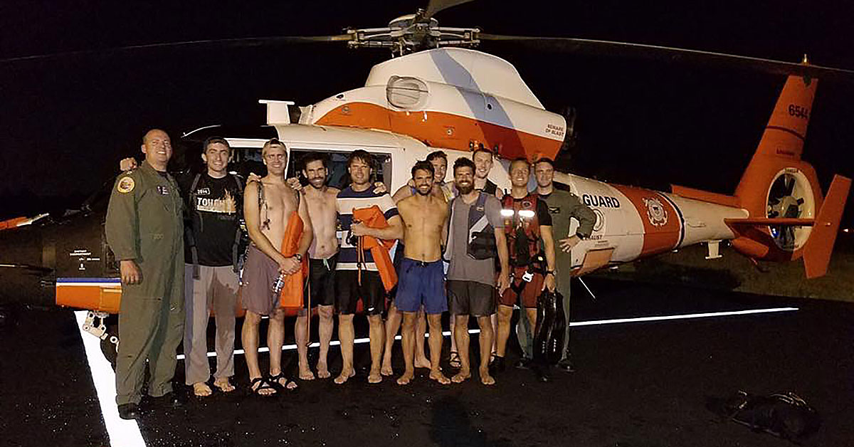A helicopter crew hoisted four boaters and took them to Mount Pleasant Regional Airport. The rescue crew returned and hoisted the four remaining boaters.