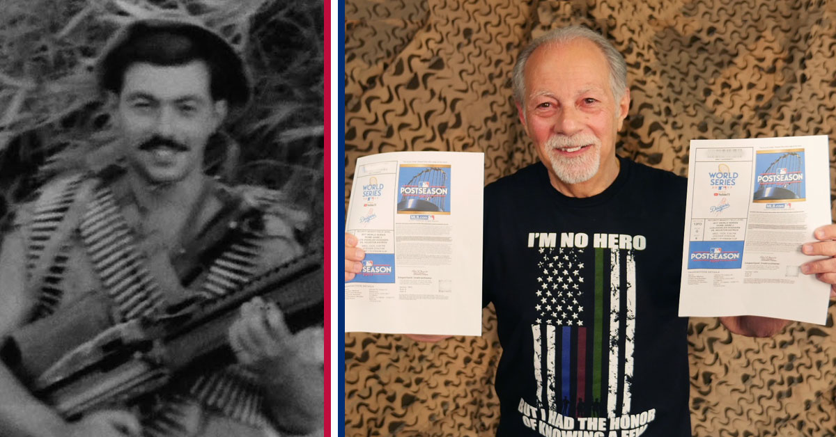 “The heroes they chose are amazing. I called my contact and thanked him for allowing me to participate. I then asked if I could purchase two tickets. He regretfully indicated no tickets were available. I wanted to visit with those chosen for this is the first time the Dodgers have honored Vietnam veterans at a World Series.”
