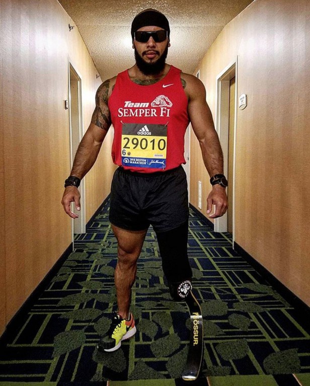 His Apr. 18 race in Boston as part of Team Semper Fi was his second marathon. He ran his first in the Oct. 2015 Marine Corps Marathon where, with the help of others, he finished despite fracturing his leg and busting his knee.