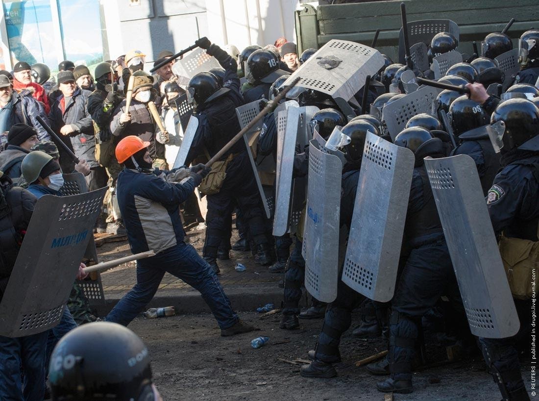 Euromaidan protestors battle police in central Kyiv in 2014.
