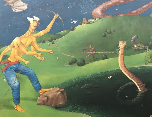 Mural in Kyiv depicting a Ukrainian Cossack strangling Vladimir Putin, represented as a snake.