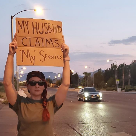As the page grew, so did its message. Zach and Jay realized the social responsibility that had been placed on them and crafted their posts accordingly. While they still made humorous signs like “Mortarmen Are Infantry That Can Do Math”, they also used their platform to bring attention to serious topics with signs like “Text Your Buddies…It Could Save A Life” and “Where Is Vanessa Guillén??” The two also carefully crafted the identity of the page with the character of the Warfighter. Wearing OD green skivvies, black sunglasses, and a hat, the Warfighter persona aims to focus attention on the message of the sign while also representing all types of veterans. “Anyone who puts on the uniform is fighting the war,” Jay said. From S1 and supply to mechanics and logisticians, “everybody is the warfighter in their own way.” Zach says that the concept was inspired by the 2006 film V for Vendetta, in which a masked man fights against a fascist tyrannical government. V’s face, hidden by a Guy Fawkes mask, is never seen in the film and the mask becomes a symbol of freedom and rebellion against the oppressive regime. Jay reinforced this idea when he talked about donning the skivvies, hat, and shades to hold up a sign. “In that moment, I’m the Warfighter.”