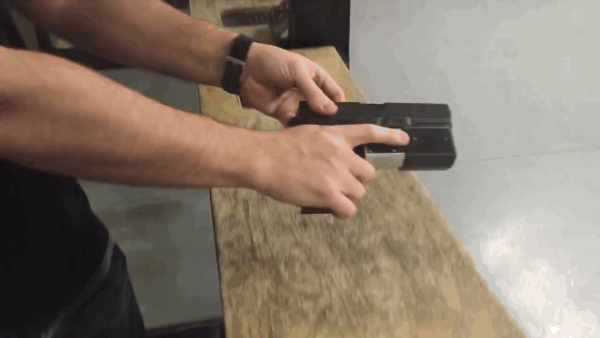 It’s similar to unlocking your mobile phone. After authentication via fingerprint, the Guardian unlocks allowing the slide to snap forward granting access to the handgun trigger: