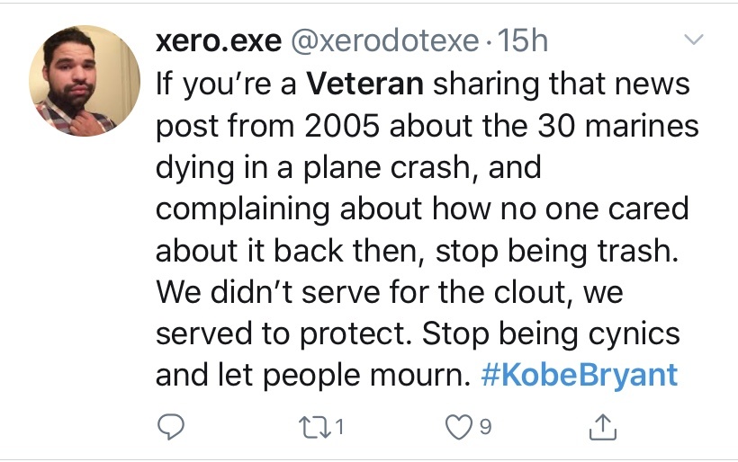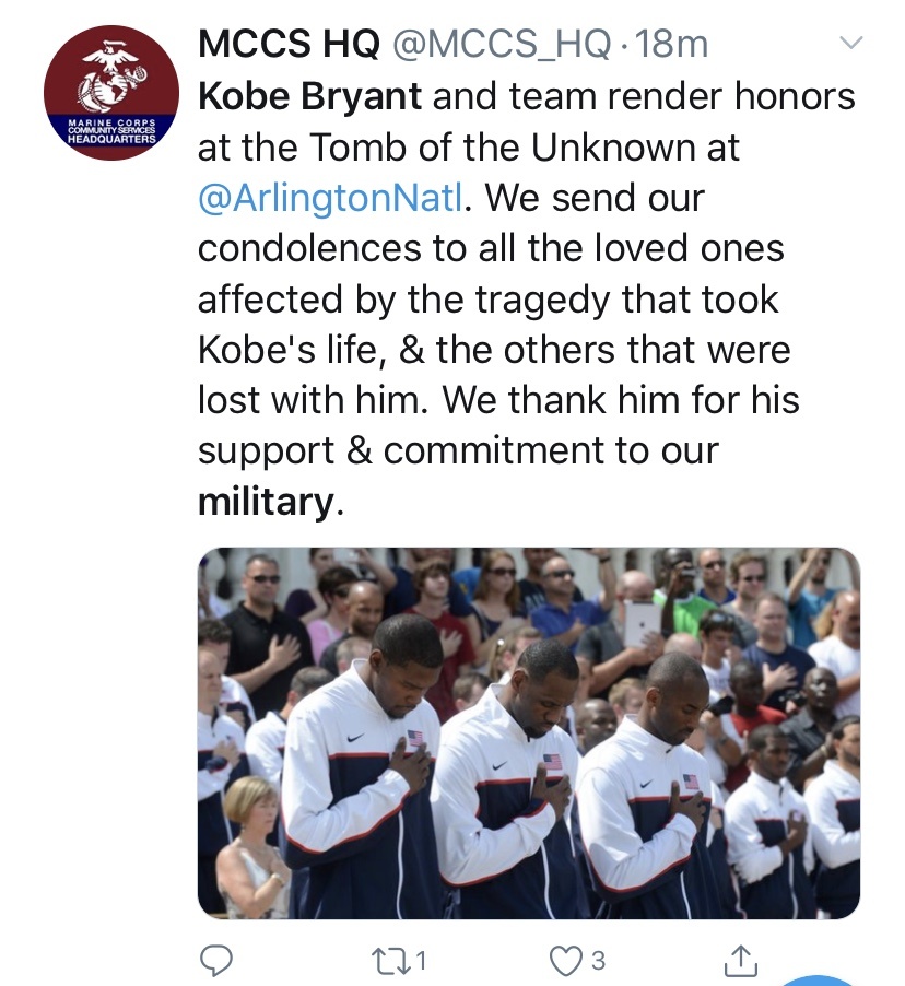 Veterans took to the internet to express their sympathy as well as their own experiences with Kobe and his support for our military community.