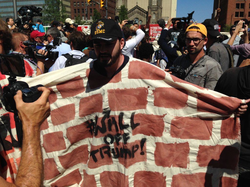“The Afghan people that I interacted with on a daily basis are forgotten about, and politicians who spew hatred toward them and say, ‘We’re going to bomb ISIS back into the Stone Age and steal their oil’ forget that that’s not even their oil,” Abshire said just before joining a circle of protesters forming a human wall in the center of Public Square here, several blocks away from Quicken Loans Arena where the RNC is being held. “That belongs to the Iraqi people, who have been victimized for years now. And I want to stand up against that.”