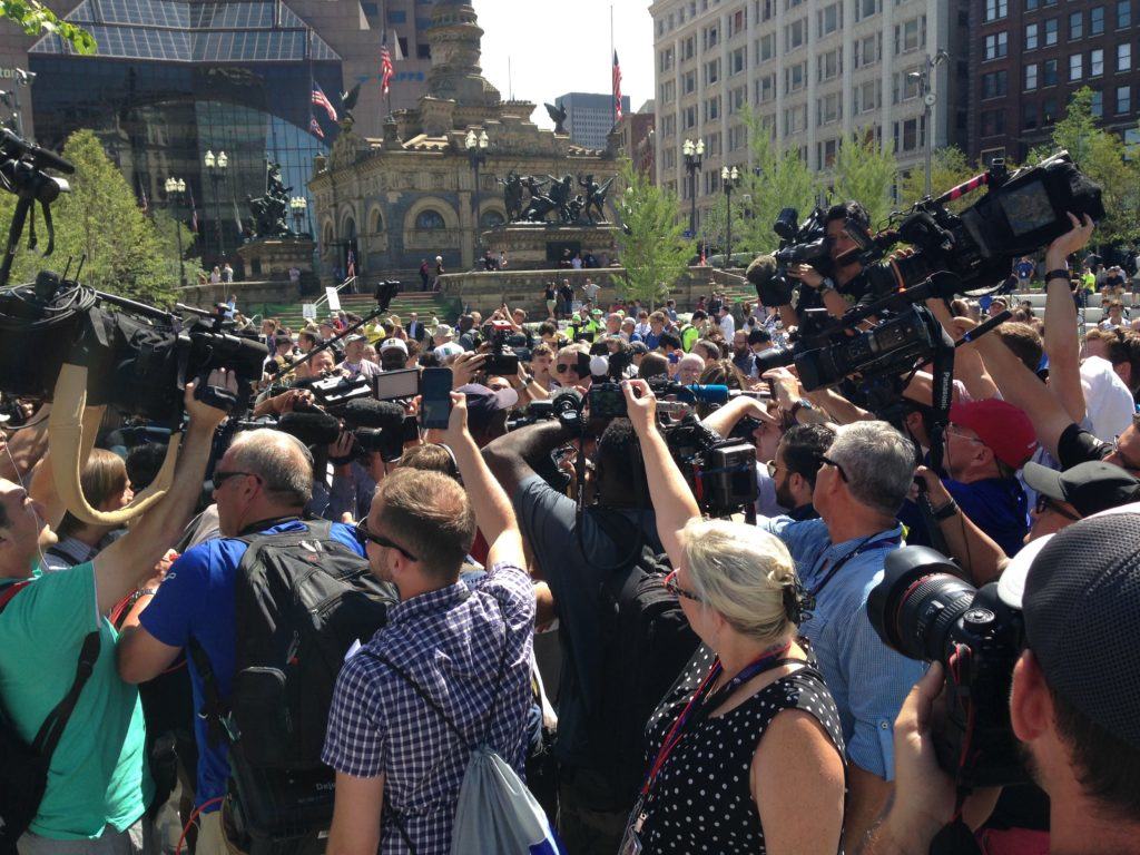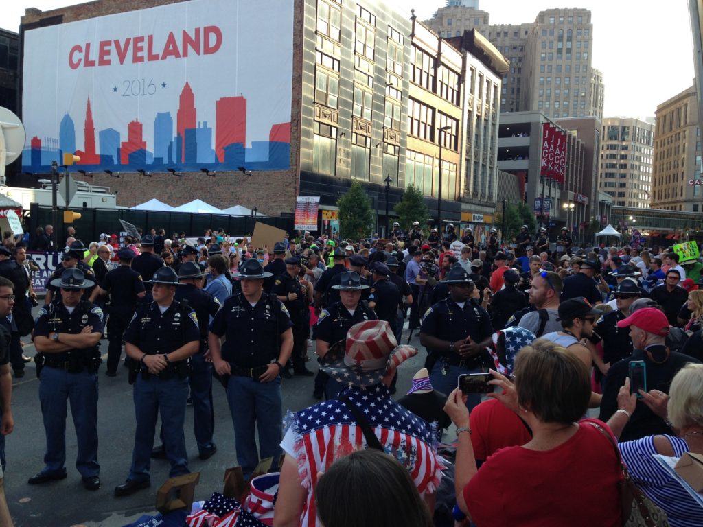 But nearly three-quarters of the way through the event, there have been no major incidents. Protests have been mostly confined to Public Square, and the potential for them to spread beyond that is severely limited by the force protection measures the city put in place ahead of the event — including a temporary perimeter fence erected around the Quicken Loans complex that now separates the zone from the rest of the city — and a massive influx of law enforcement from other states, including police and state troopers from as far away as Florida and California.
