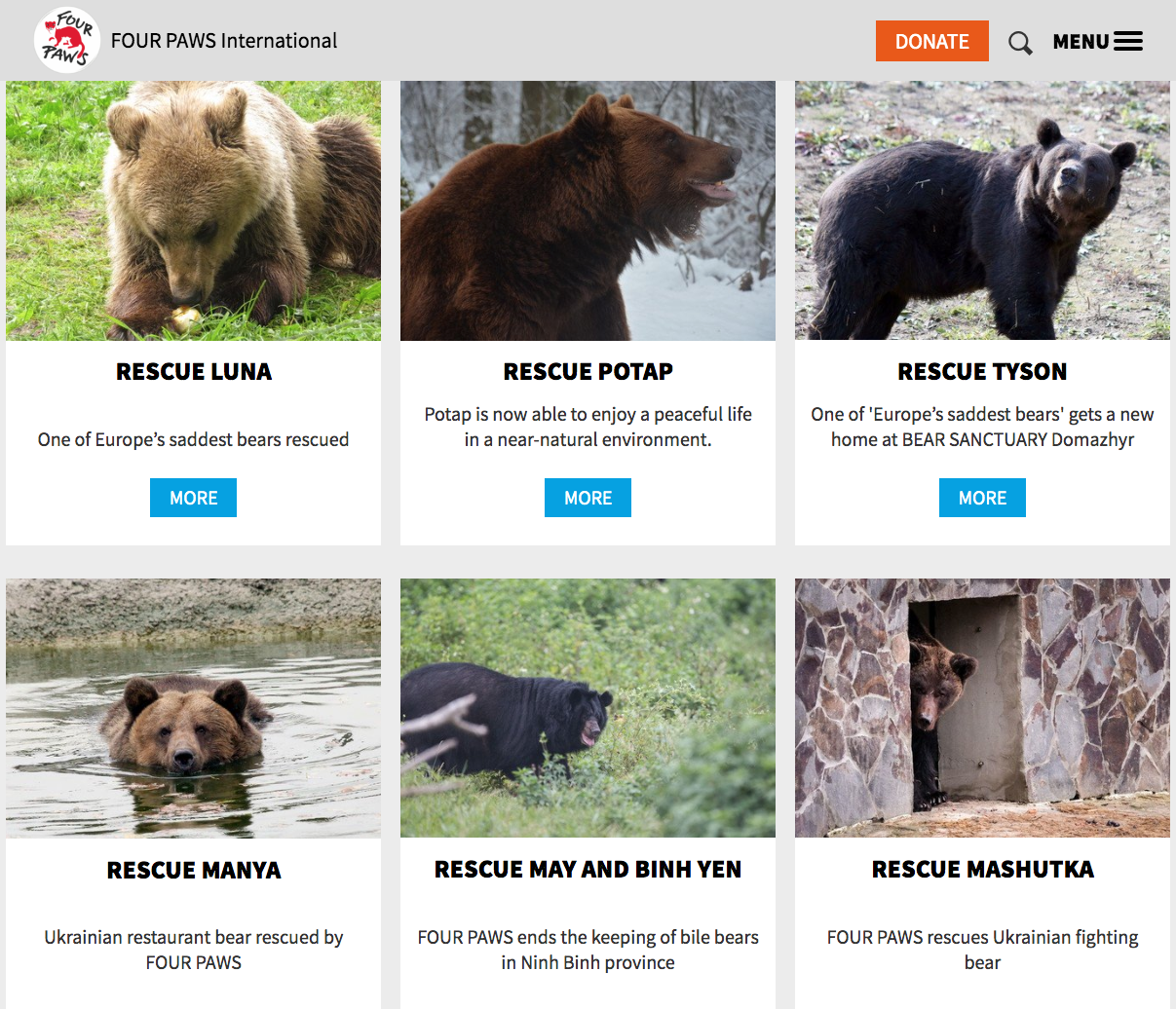 From cage fighting to illegal puppy trades to disaster zones, FOUR PAWS provides a voice — and action — for animals under direct human control.