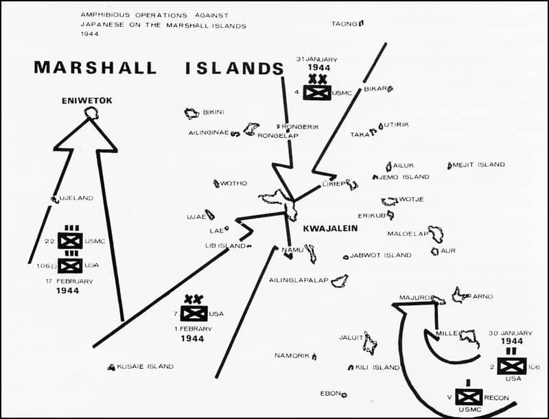 In Nov., 1943, the United States had taken Tarawa in the Gilberts – and paid a heavy price. According to Seizure of the Gilberts and Marshalls, published by the Center for Military History, 3,301 Marines were killed, wounded, or missing after the effort to take Tarawa. Kwajalein was expected to be even tougher, prompting legendary commanders like Raymond Spruance, Richmond K. Turner, and Holland Smith to oppose hitting Kwajalein at all.