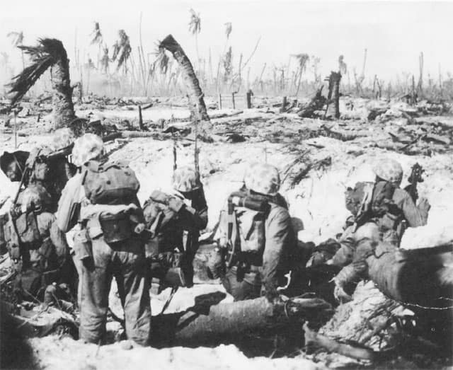 During World War I, Japan had taken the Gilbert Islands, Marshall Islands, and Caroline Islands from Germany. According to an official Marine Corps history of the 4th Marine Division, the islands were soon fortified with bunkers, air strips, a lot of firepower, and very fierce troops.
