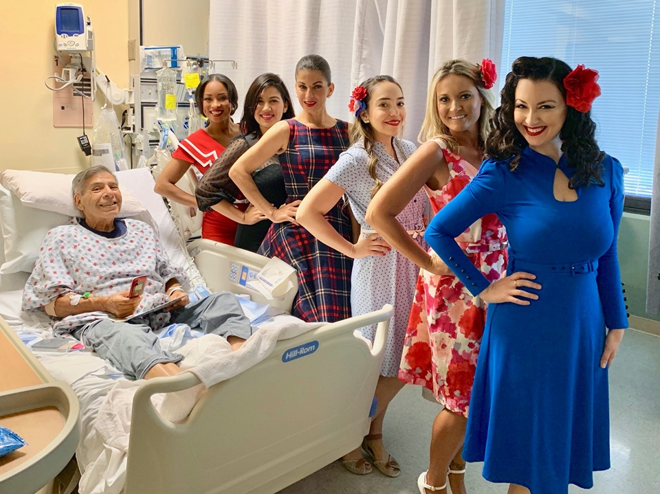 “Seeing the reaction of the patients and how it would really brighten their day — they did not expect that a World War II pinup girl was going to walk into their room with a gift. Sometimes the smallest gestures can make a really big difference and some of the patients would start to cry, like, oh my gosh, am I dreaming? And say ‘Oh, what a blast from the past.’ Just to get their mind off the fact that they’re in the hospital really was meaningful,” Elise shared. “I could see the impact of being there in person for people when they’re going through a struggle. So fast-forward four years and I ended up resigning from my job in the hotel industry to see if I could make this happen full-time.”