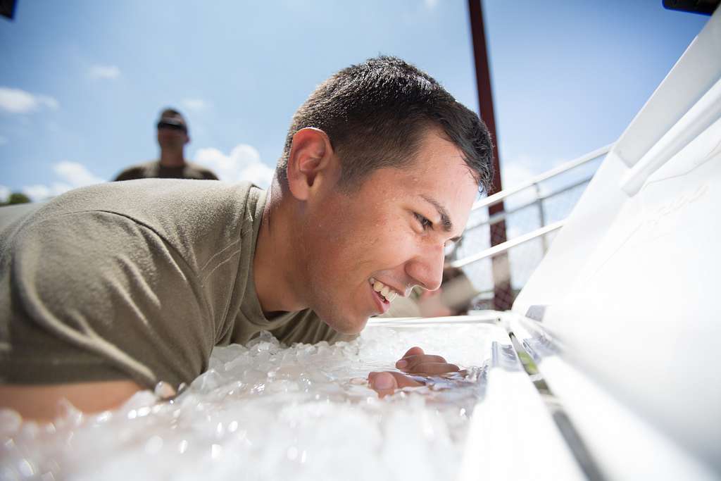 The National Institutes of Health lists a normal core body temperature as being between 97-99 F. Above this range, a person is at risk of heat-related illness. During summertime activities, it can be easy to exceed a core body temperature of 100 F. That said, the Army has a cheap and low-tech solution to keep cool. In 2011, Army Basic Combat Training units adopted the Army Immersion Cooling Station. While it sounds fancy, an AICS is simply a container of ice water large enough for a person to submerge their hands and forearms, past the elbows. The Army has used coolers or even plastic drums cut in half. With the arms immersed in cold water, the blood in them is cooled before cycling back into and around the body. The Army notes that arms should be immersed for 3-5 minutes at 35-44 F or 5-8 minutes at 45-54 F. A water temperature below 35 F is considered unsafe. The cooling effect can be felt in both the heart and the lungs as blood from the arms comes back to the chest. When this blood is pumped into other parts of the body like the legs, the cooling effect can be felt there as well. Consider dedicating a cooler to an AICS to keep cool this summer.