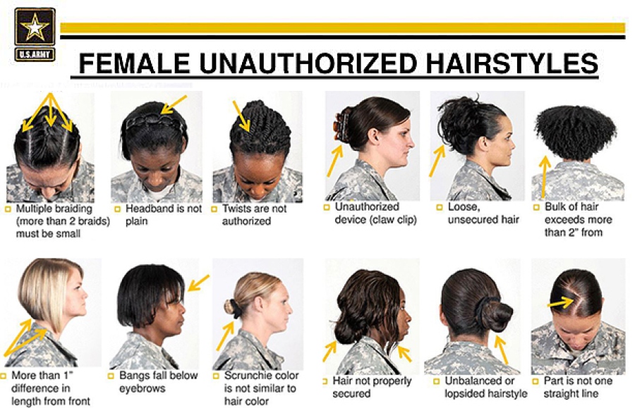 Heck, sometimes it might just be easier to chop it all off like GI Jane (newsflash that’s against regs too, no buzz cuts for women!). Looks like a bun it is!