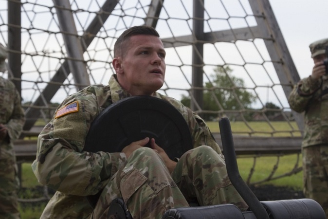 But don’t just stick to the standard push-ups — that’s child’s play. Break out some of the free weights your supply sergeant has in the locker and really make them feel it.
