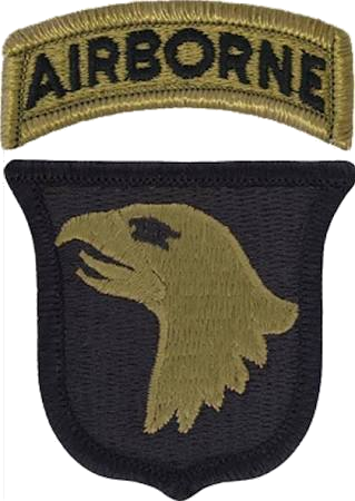 The shoulder patch for the 101st Airborne Division — The Screaming Eagles — reflects that division’s name and heritage.