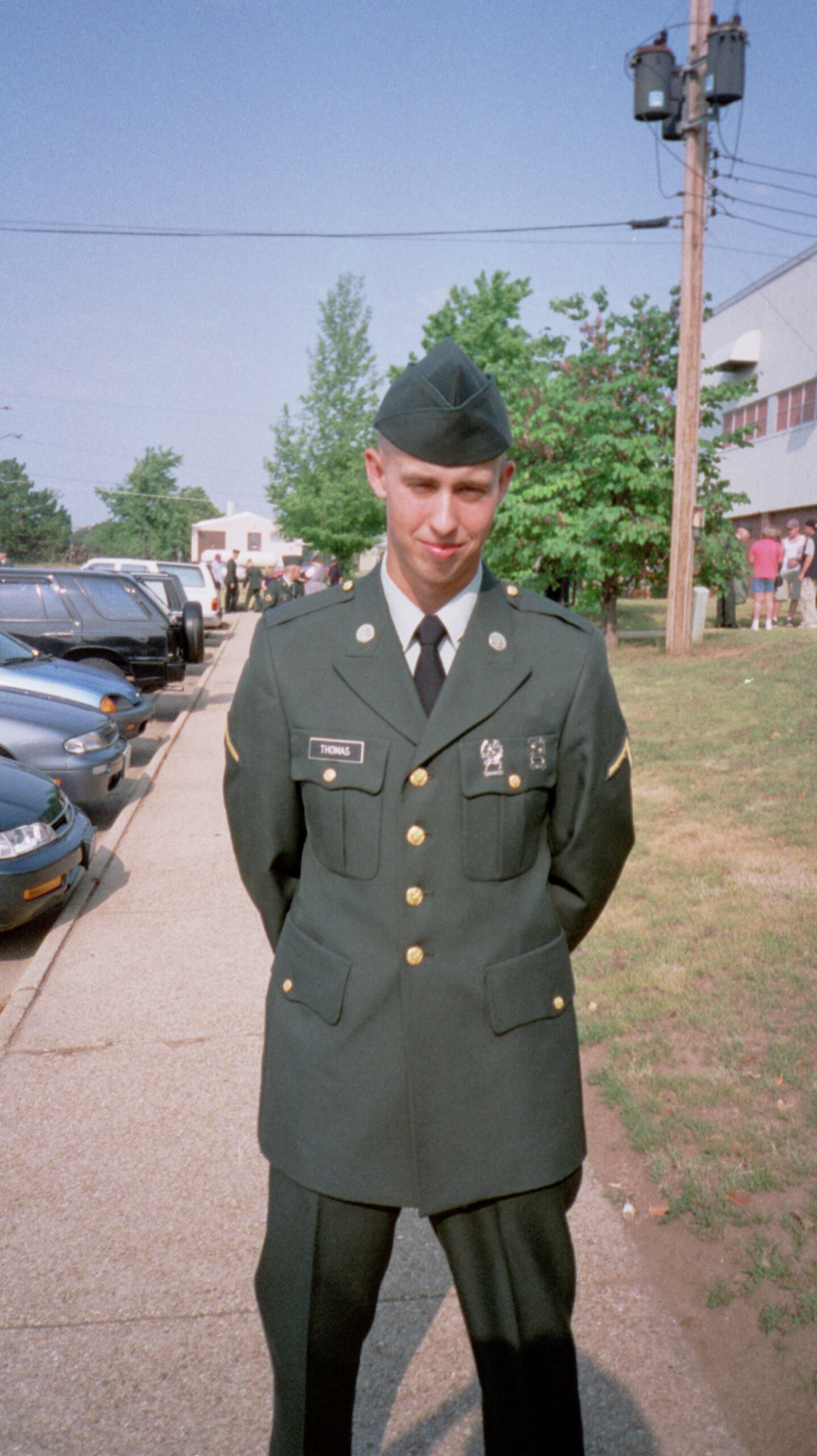 Though Thomas set his sights on becoming a Marine, the Army won. “The recruiter told me about the split ops program where you could do basic training after your junior year during the summer and spend your senior year in the Army reserves. After graduating, you go to your MOS training,” he explained.