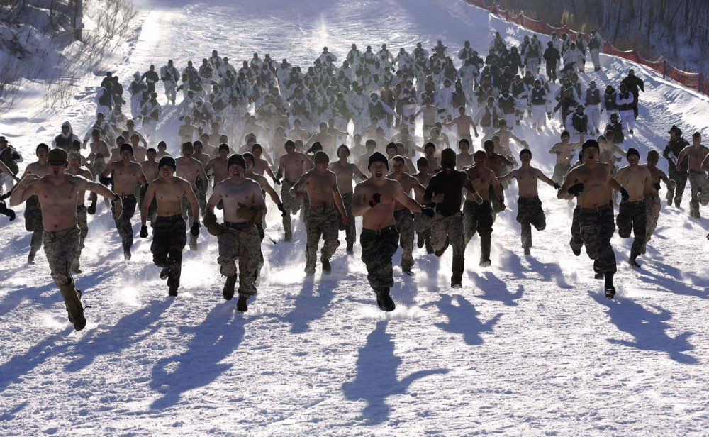 … and these Marines showing how moto they are with a little cold, shirtless winter wonderland PT: