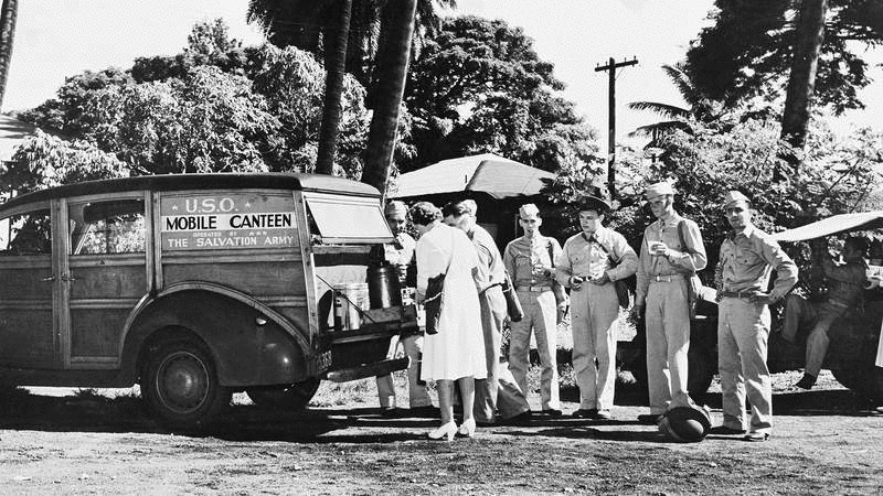 In 1941, President Roosevelt wanted to bring together several service associations to boost U.S. military morale and bring some of the comforts of home to the front. Those associations included the Salvation Army, Young Men’s Christian Association, Young Women’s Christian Association, National Catholic Community Services, National Travelers Aid Association, and the National Jewish Welfare Board.