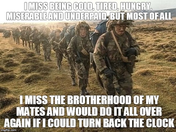 Friendships in the military are formed by sharing suffering, but brotherhood is formed when two can talk to each other about things outside of work.