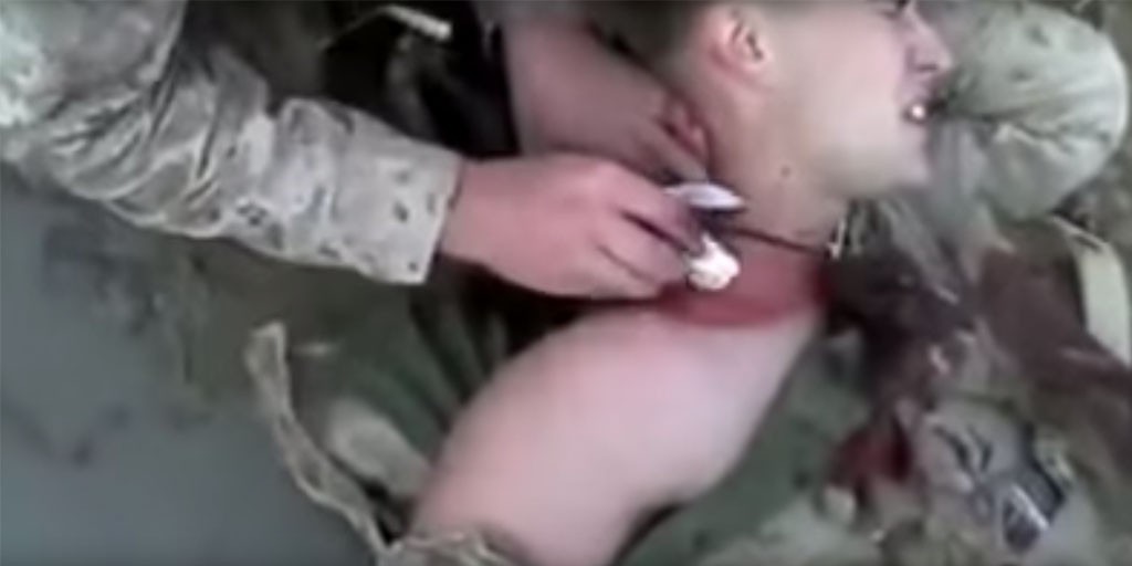 This video starts with Marines engaged in a firefight against the Taliban in the Afghan countryside in 2012. All of a sudden, around the 0:50 mark, shots are fired and the helmet camera scans to the left as a Marine goes down. The next thing you hear is him yelling, “aghhh, aghhh, I’m f–king hit!”