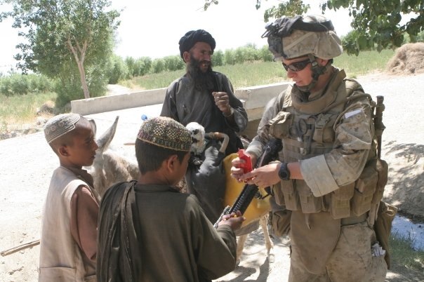 Next came a Marine Veteran With A Sign, pun absolutely intended. Though it may seem odd having a devil dog hang around with soldiers, it was Zach Bell’s style of communicating with humor and amassing cult-like following which had Mathews seeking him out.
