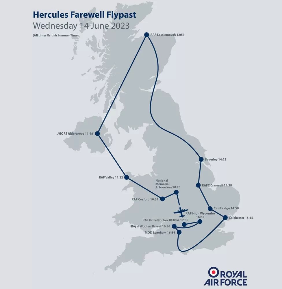 Officially, the RAF will stand down the C-130 and 47 Squadron that flies it on June 30, 2023. To celebrate the aircraft’s service and retirement, a trio of C-130s flew over locations of significance in England, Wales, North Ireland and Scotland. On June 14, 2023, the Hercules Farewell Flypast took the planes to cities and towns like Beverley in East Yorkshire and Royal Wootton Bassett in Wiltshire. The former is where 47 Squadron was formed in 1916, and the latter hosted hundreds of repatriation ceremonies for fallen military personnel flown by the C-130.