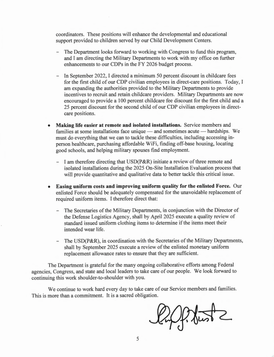 Titled “Our Enduring Duty to America’s Service Members and Their Families,” Austin’s latest initiatives in the memorandum include: