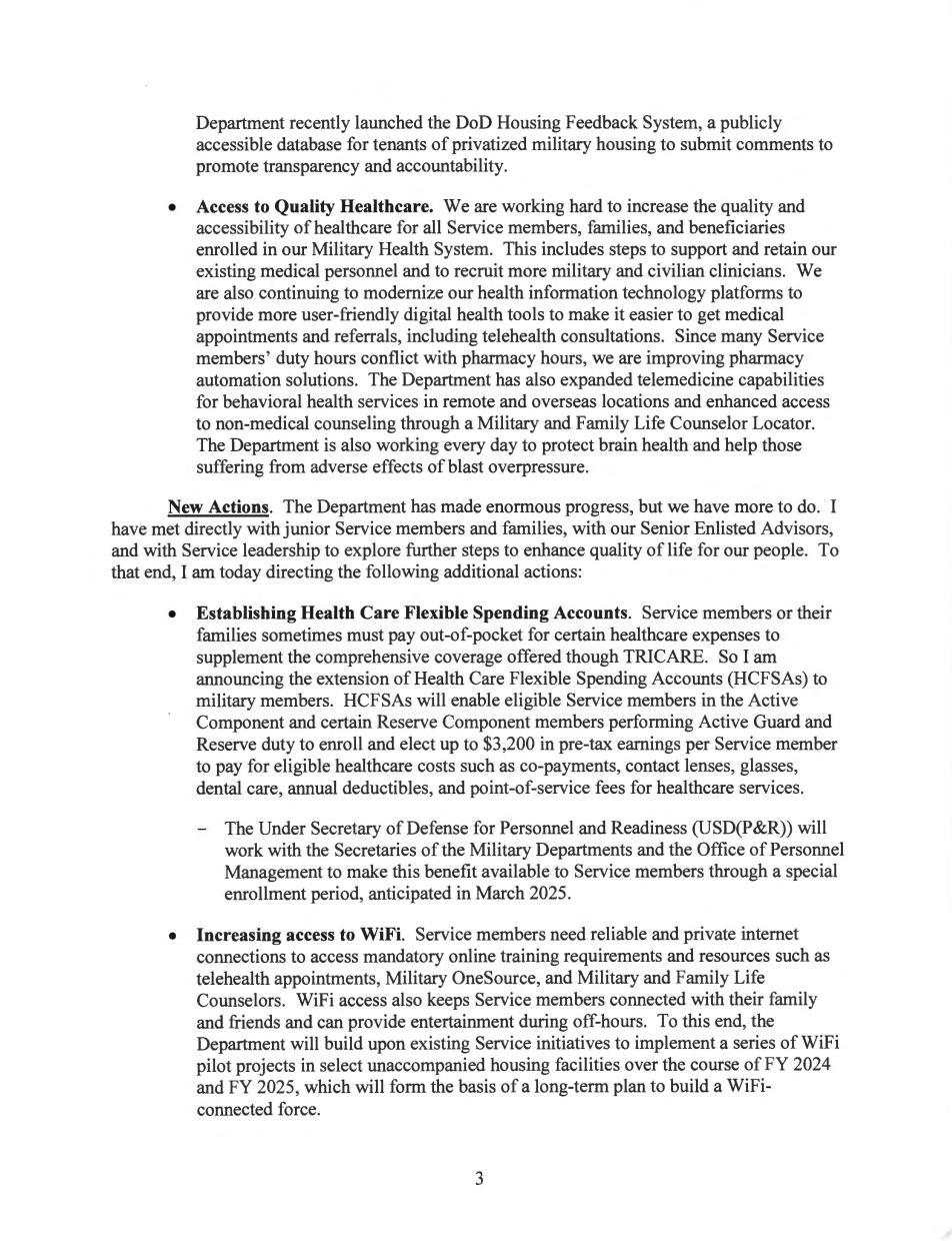 Titled “Our Enduring Duty to America’s Service Members and Their Families,” Austin’s latest initiatives in the memorandum include:
