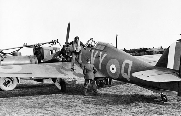 Hemingway briefly served with No. 253 Squadron before returning to No. 85 Squadron in June 1940, just in time for the Battle of Britain to start the next month. He was shot down twice during the ferocious fighting and was his squadron’s first official combat victim over Britain. Hemingway also damaged a German Bf 109 fighter and was promoted to flying officer.