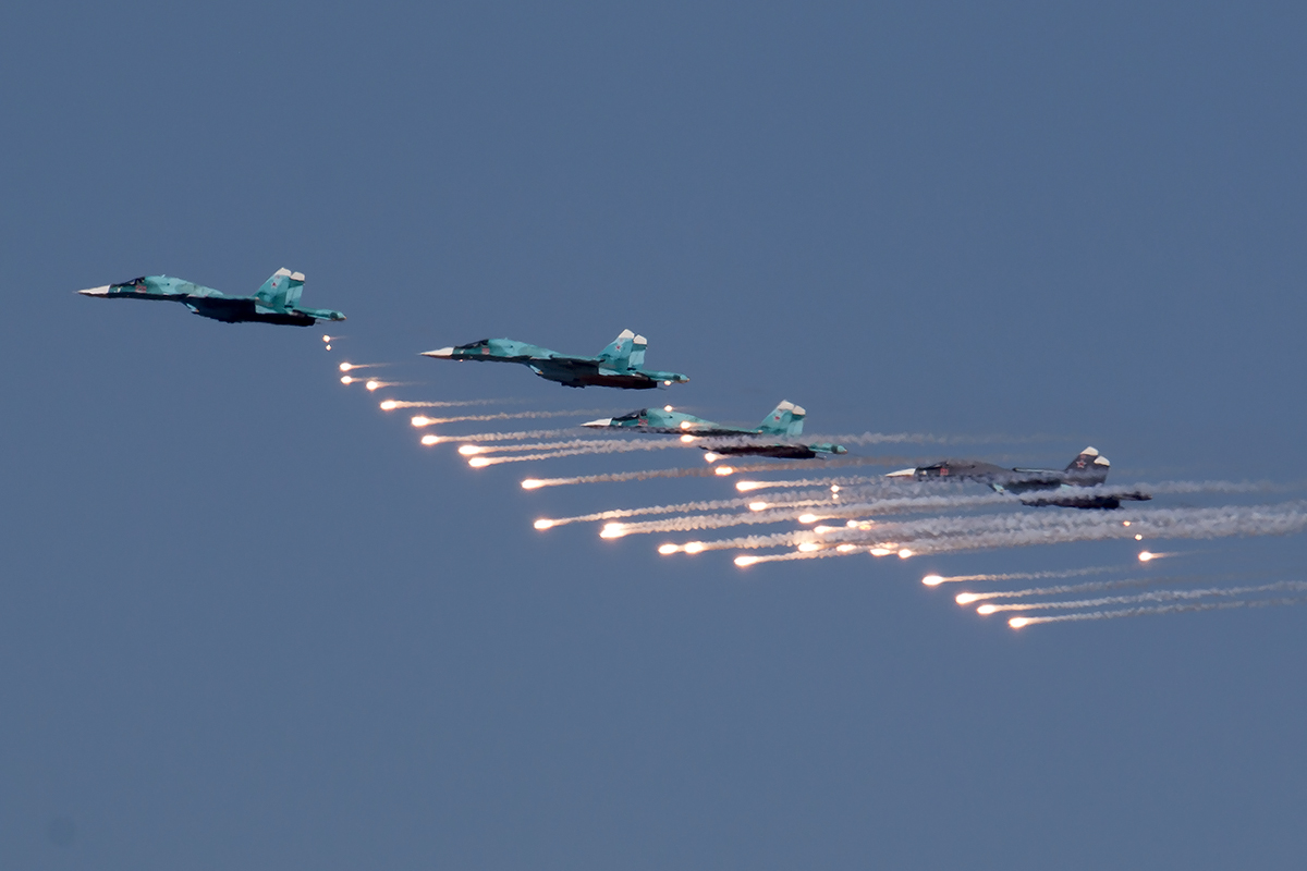 The Russians rely on Su-34s and Su-35s for many of their strikes. They’re both multi-role jets, with the Su-35 a little more focused on air-to-air and the Su-34 better for air-to-ground.