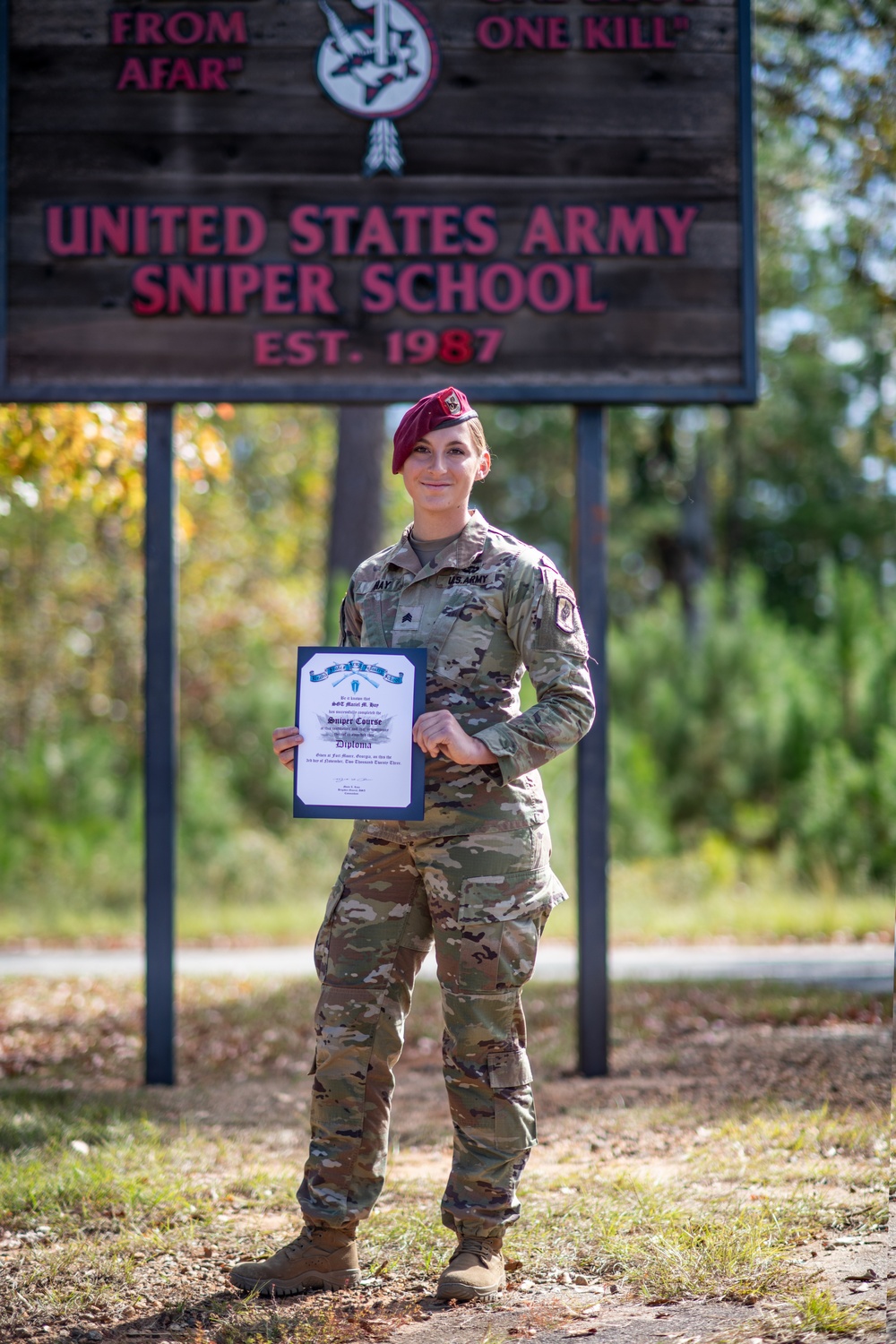 On November 3, 2023, Sgt. Maciel Hay, a cavalry scout assigned to 1st Squadron, 91st Cavalry Regiment, 173rd Airborne Brigade, graduated from sniper school. “I grew up shooting, mostly rifles and handguns, on my family’s ranches in Rocklin, California and Medford, Oregon,” Hay said in a 173rd public affairs release. Her nickname was “sniper.” Hay explained, “But the nickname came from the fact that I could find things really fast, similar to how a sniper does target detection.”