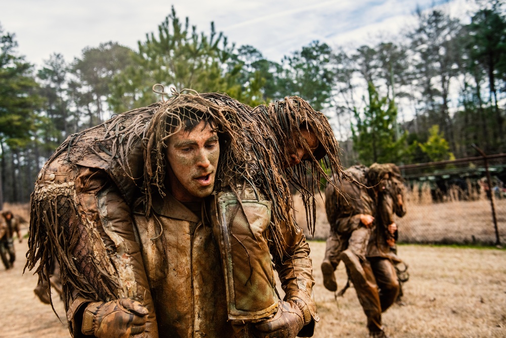 Prior to attending sniper school, Hays also had to craft a ghillie suit, a camouflage clothing worn by snipers to blend into their environment. “It took many hours, multiple people and tons of sewing to create an acceptable ghillie suit,” Hays said, highlighting the group effort. The ghillie suit is a vital part of the five-week course which goes beyond marksmanship to include stalking and concealment, observation and intelligence gathering, survival skills and land navigation.