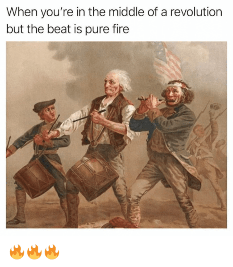 The historic piece of art that’s featured in the hilarious meme showcasing three marching Revolutionary War musicians has a long, long history. While it might not date as far back as the Revolutionary War, it shouldn’t come as a surprise to anyone to learn it was inspired by and modeled after drunken American war veterans.