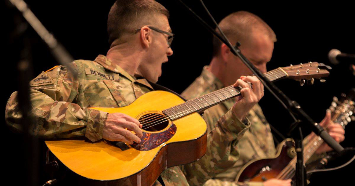 The Army fields a number of official touring bands, all comprised of active soldiers. But the members of the U.S. Army’s Field Band are considered “The Musical Ambassadors of the Army,” going around to play for civilians and military installations alike. The unit has four touring sub-bands: The Concert Band, The Soldiers’ Chorus, the Jazz Ambassadors, and the Six-String Soldiers — its bluegrass-country cover band.